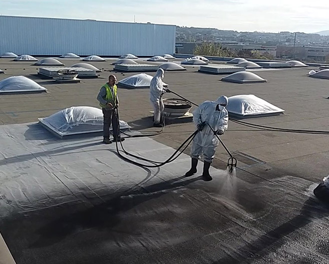 Prenotech s’aplica mitjançant projecció en fred i no requereix imprimació, aconseguint alts rendiments, superiors a 700 m2/dia.
