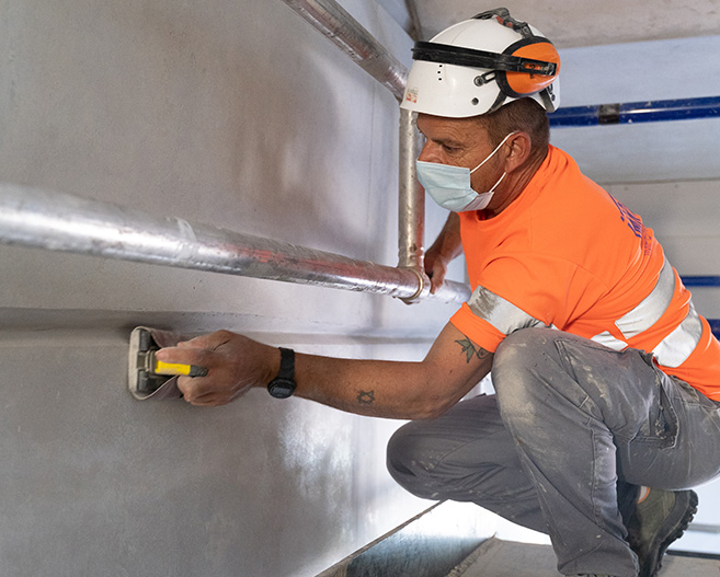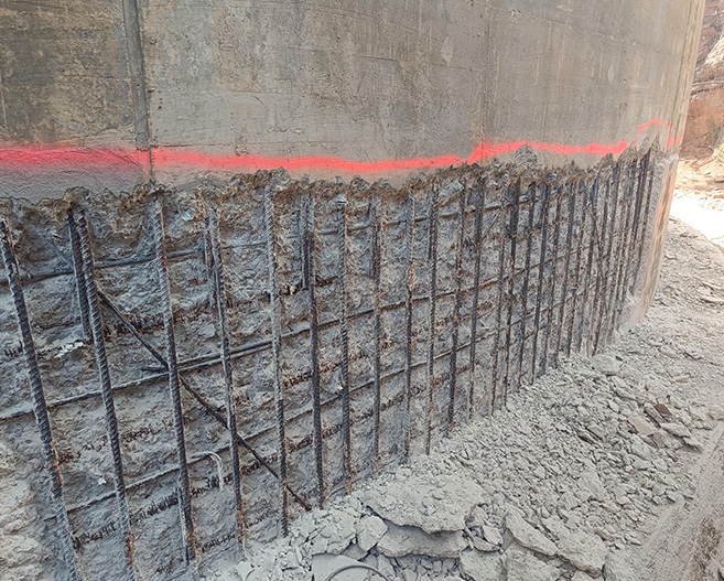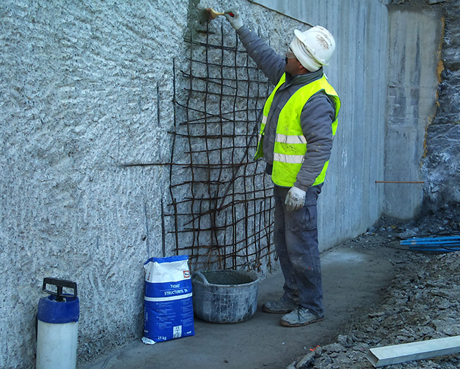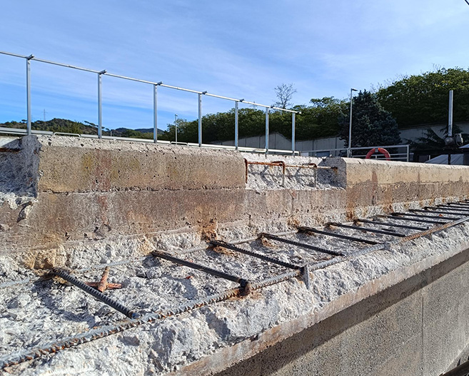 Reparacions d‘estructures de formigó mitjançant la seva reconstrucció geomètrica i posterior acabat estètic amb morters i formigons tècnics base ciment i base resines, amb la finalitat de recuperar la seva capacitat estructural.