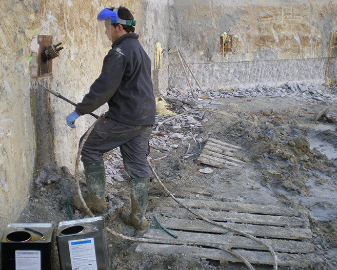 En aquells casos on les estructures a tractar estan en contacte amb l’aigua, ja sigui per una filtració, per capil·laritat des de el terreny o per condensació tèrmica, abans de procedir a la reconstrucció estructural hem d’aturar aquest aigua.